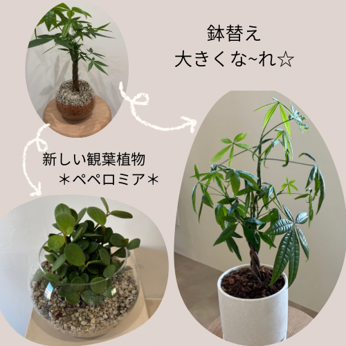そして、もともとパキラが入っていたガラスの鉢には、新しくペペロミアをお迎えしました。